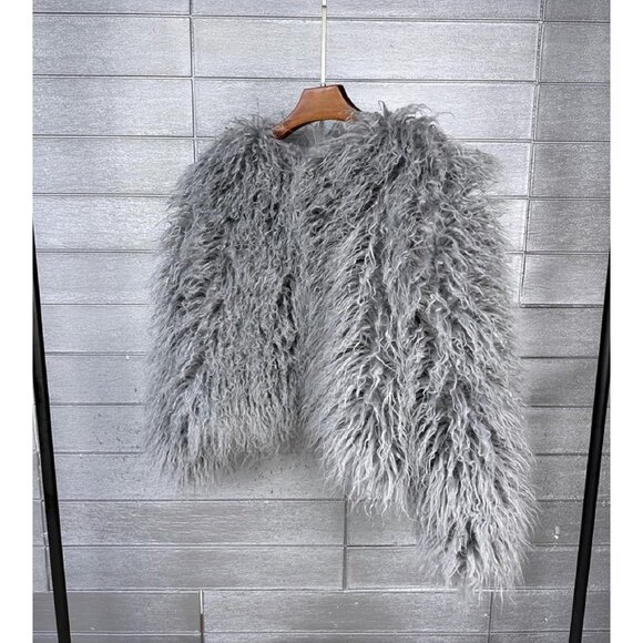 Fluffy Grey Faux Fur Coat Women’s Shaggy Jacket Long Sleeve Warm Winter Outwear
