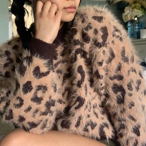 H&M Sweater, Perfect condition, Warm and soft, Tan with brown trim and leopard print. made in cambodia, stretchy