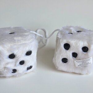 Fluffy White Fuzzy Dice - Retro Style