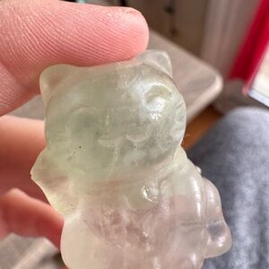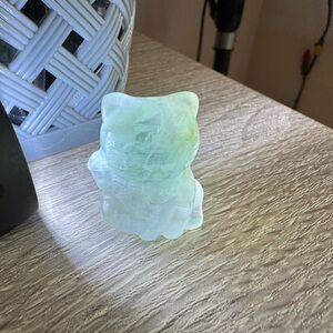 Adorable translucent lucky cat figurine in a soft green hue. Ideal for collectors or as a decorative accent.