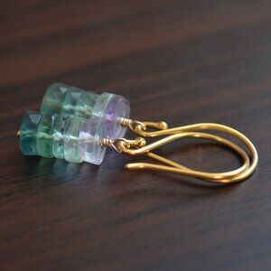 Fluorite Stack Earrings in Gold Vermeil - Hand Made in Canada