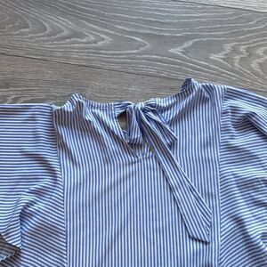 Super adorable crop for summer. Fluttery shoulders with peek a boo in back. Looks so cute with Jean shorts!