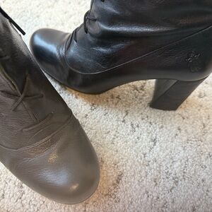 Fly London 9.5 (40) side zip EUC oBlack Leather Lace-Up Heeled Boots