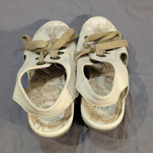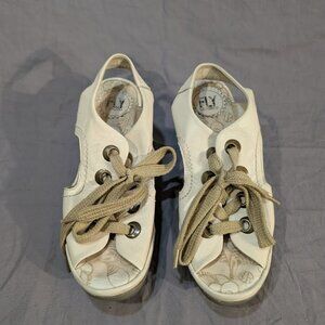 Fly London Cream Lace Up Peep Toe Chunky Heel Sandals Women Size 39