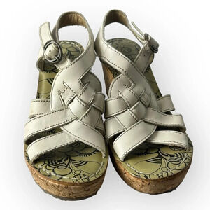 Fly London Grin White Cork Wedge Sandals 38