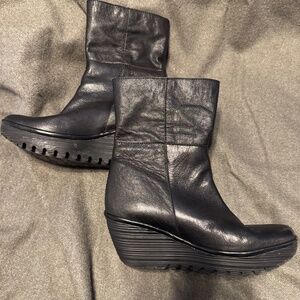 Gorgeous Fly London boots. Supple black leather. Like new. Zipper closure.