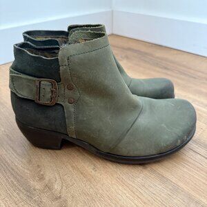Fly London Mel Green Booties Leather Suede Buckle Detail Boho Earthy EU 37