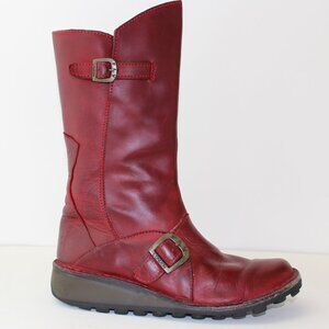 Fly London Mes Patent Red Leather Buckled Wedge Boot Womens (Eu 36/US 6)
