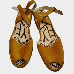 Fly London Mustard Yellow Wedge Sandals Peep Toe Ankle Wrap Shoes