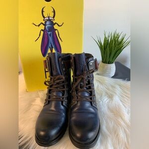 Fly London Navy Lace up Leather Ankle Boots with Seat belt buckle. SZ: EU 36