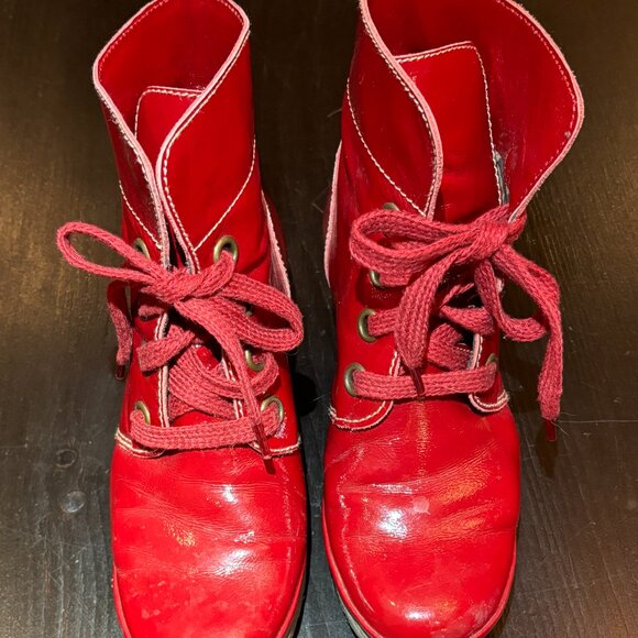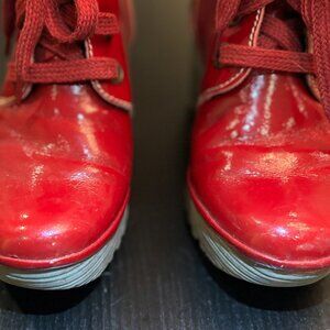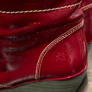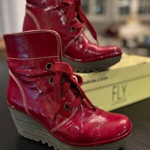 Just in time for the holidays! Fly London brand in the box. Barely worn (3x) red leather ankle boots in excellent condition. UK size 38.
