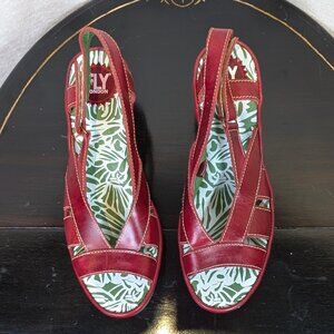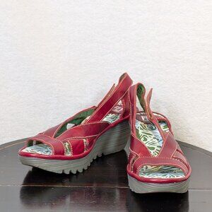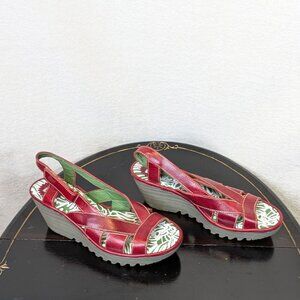 The cushioned supportive footbed adds an extra layer of coziness, making these sandals ideal for extended wear. The platform wedge design not only adds a trendy and chic element to your ensemble but also provides a subtle lift. The approximately 2.5-inch heel height and 1-inch platform height strike the perfect balance between style and practicality, offering an elevated look without compromising on stability. Size 40. In excellent pre-owned condition.