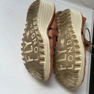Fly London Shoes Sandals Sz 39 US 8 - 8.5 Ankle Strap Wedge Peep Toe Lace Pink