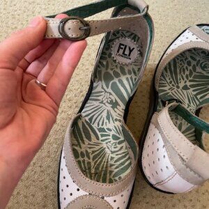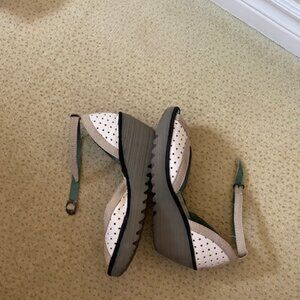 Fly London Wedge Sandal, Size 10 Leather White and Tan/Beige colour