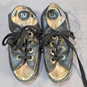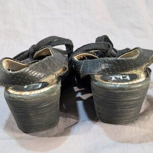 Fly London Ylva Black Chunky Heel Lace Up Peep Toe Slingback Women Size 38