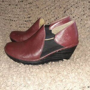 Fly London Yua P500578003 Women's Red Leather/Elastic Platform Wedge Pump Size EU 38
