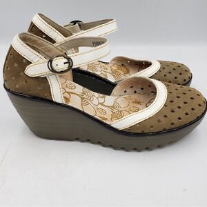 EUC Fly London Yven Gorgogna Wedge sandals with buckle strap. Such great summer shoes. Perfect with jeans or a skirt or dress. Fly London sandals are such good quality and SO COMFORTABLE. These will last you for a long time, and your feet will thank you for it.