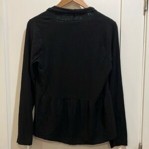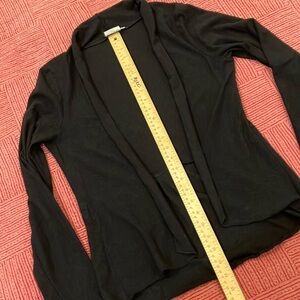 Gold used condition, 100% certified organic cotton, designed in Canada ethically made in India. One of my favorite brands but I wear large and this piece is just a bit snug for me. AI description: This elegant black shrug is perfect for layering and adding a touch of sophistication to any outfit. Its versatile design makes it a must-have in your wardrobe.