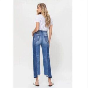 Flying Monkey Jeans Cropped Ankle Two Tone High Waist Raw Hem Distressed Size 26