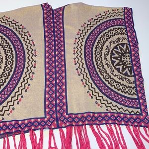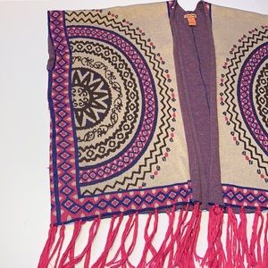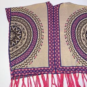 GUC Flying Tomato boho pink and tan fringed poncho in women’s size small.