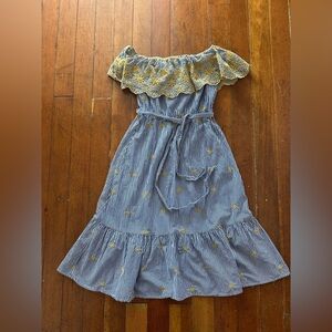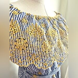 Flying Tomato Cotton Blend Embroidered Off-Shoulder Striped Sundress SZ M