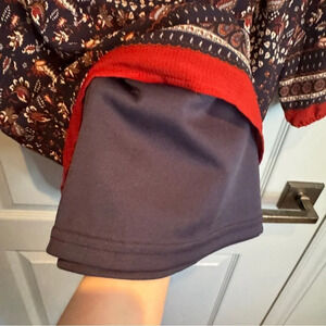 This beautiful boho hippie blouse from Flying Tomato features an all over nature botanical print in rich deep tones of red and blue, along with a crochet neckline accent, and bright red accents at the sleeves. It is lined, breezy, and lightweight. It features a keyhole closure at the back. From the June 2023 collection.