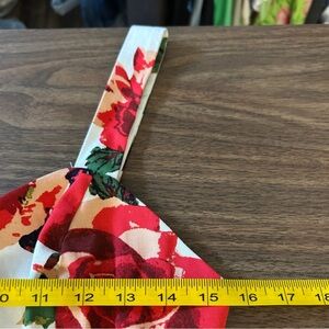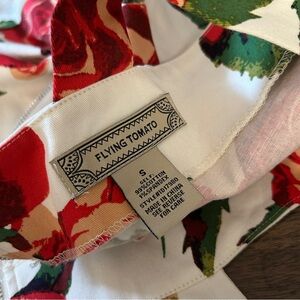 Stylish mini dress with vibrant red floral pattern. Features a sweetheart neckline and flared skirt.