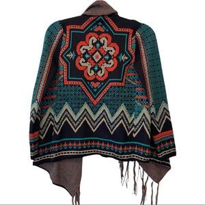 Flying Tomato retro bohemian Aztec print fringed open front cardigan size small