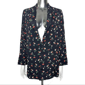 Flynn Skye Blair Blazer in the Cherry Bomb print. Notched collar, long sleeve blazer with button closure.