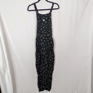 Flynn Skye Yup Overalls Slouchy Jumpsuit Black Ditsy Floral Rayon