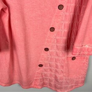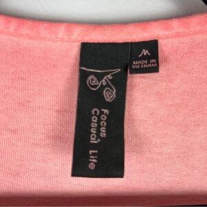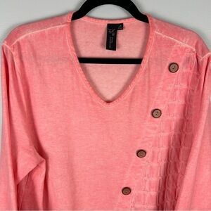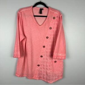 Focus Casual Life Lagenlook Cotton Pink V Neck 3/4 Sleeve Top Medium