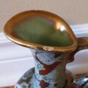 Elevate your home decor with the Fohr-Keramik of West Germany Vintage Ceramic Vase. A true testament to the craftsmanship of the 1950s, this mid-century pitcher exudes a timeless elegance that can complement any interior design theme. The ceramic material promises durability while adding a touch of natural warmth to your space. Crafted in Germany during a period when attention to detail was paramount, this piece is not only a functional item but also a collectible that represents a rich design heritage. Its distinct style and quality make it an excellent addition to your vintage collection or as a unique statement piece in your living or display area.