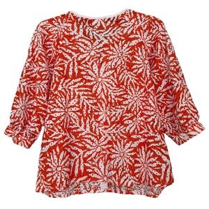 Foil Tropical Perforated Eyelet Blouse Size 4 Orange White Cotton