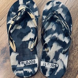 Fojos Flip Flops! Worn 2 times. Can’t see a size on it, but think they are about 6.5.