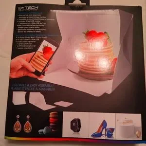All the info is on the pictures. Phone & headphones not included. Just the box. If you love to take pictures of your jewellery for your business, this is perfect. I have 3 boxes for sale.