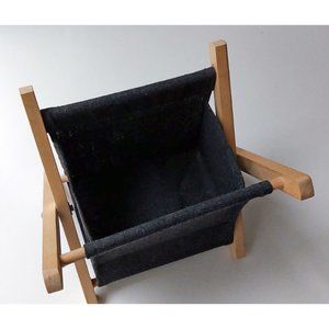Charcoal grey canvas type fabric on a wooden frame. Folds flat for storage. Phone not included. "Like new" condition.