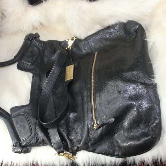 Foley + Corinna Mid City Tote Tote bag 18" high, 18" long, 3 1/2" deep 5" handle drop Removable 18" leather , Cotton twill lining Open top Exterior front zip pocket Inner zip and slip pockets Leather and gold-tone hardware; good condition
