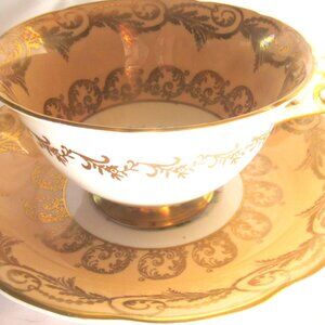 Foley Tea Cup and Saucer Hand Painted Floral Heavy Gold French Loop Handle H235