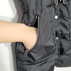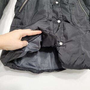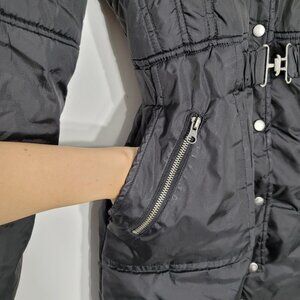 Folia Black Classic Belted Puffer Jacket Lined Hooded Winter Coat Zip Pockets Zippered and Snap Button Business Career Professional Office Wear Size XS