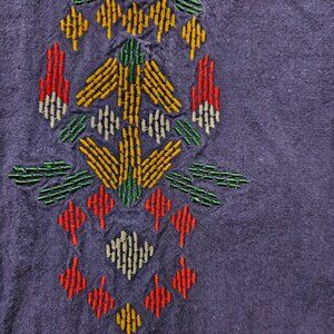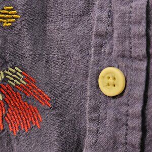 Folk Clothing brand was started in London in 2000 and this is a signature shirt. This Medium embroidered shirt is 70% cotton 30% Linen, approx. 21.5" PTP and still has extra button.