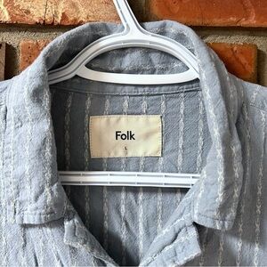Folk Men's Harris Linen Blend Blue Striped Button Down Shirt