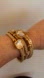 Chic bracelet set featuring rose gold and beige braided designs. Ideal for enhancing any ensemble with a touch of elegance.