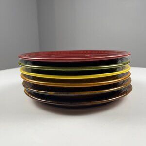 Elevate your dining experience with this set of 6 stunning multicolored ceramic dinner plates from Faience de Stamand in France. Each plate features a unique solid pattern and is perfect for serving fondue or other delicious dishes. Crafted in the late 20th century using traditional pottery techniques, these round plates showcase both style and functionality. Add a touch of elegance to your table setting with this beautiful and versatile plate set.
