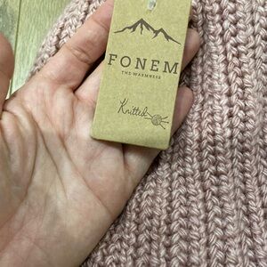 Fonem Pink Knitted Beanie with Ribbed Design and Wide Brim with scarf