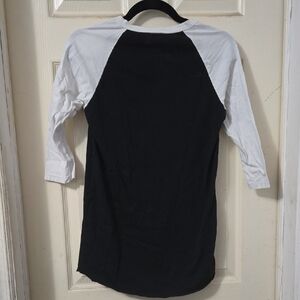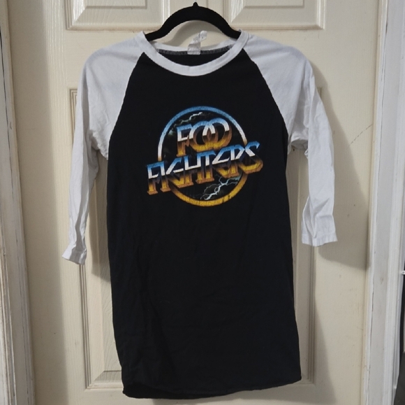 Foo Fighters tour merch. Raglan tee, with bold band logo. Unisex, size small, tighter fit. 3/4 sleeve.