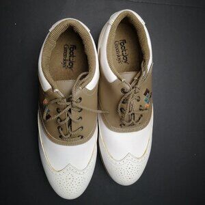 Foot-Joy Green-Joy Ladies White & Taupe Faux Leather Golf Shoes
