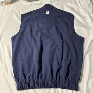 Tee off in comfort and style with this FootJoy golf vest in classic navy blue. Designed for performance, it features a half-zip front, zippered pockets, and a lightweight construction that won’t weigh you down on the course. The high collar adds extra wind protection, while the elastic waistband ensures a comfortable, secure fit.