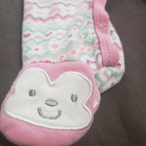 Footed Sleeper Monkey Theme Embroidered Button Up Hearts Bow Accents 6-9m Size