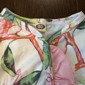 Floral footed one-piece with matching wraparound tie-knot headband. Brand new - never been worn.