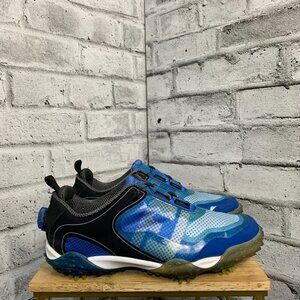 Elevate your game with the FootJoy Freestyle BOA Golf Shoes, designed for the discerning golfer who values both style and performance. The sleek blue synthetic upper provides a comfortable fit, while the adjustable BOA closure ensures a secure, customizable fit for any foot shape. These shoes are equipped with a soft spike design for optimal traction on the course, and the rubber outsole offers durability and comfort throughout the round. Breathable materials and a water-resistant construction keep your feet dry and comfortable, making them suitable for all weather conditions. The cushioned insole and moderate cushioning level provide a comfortable experience throughout the day, whether you're on the course or simply out and about. With a range of features catering to athletic performance and leisure wear, these shoes are a versatile addition to any golfer's wardrobe.
